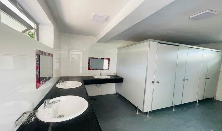 Khu vực vệ sinh được bố trí riêng cho nam nữ, sạch sẽ, được dọn dẹp thường xuyên chu đáo, đảm bảo vệ sinh. Khu giữ xe gọn gàng, an toàn, có bảo vệ trông giữ và sắp xếp xe cho học sinh.