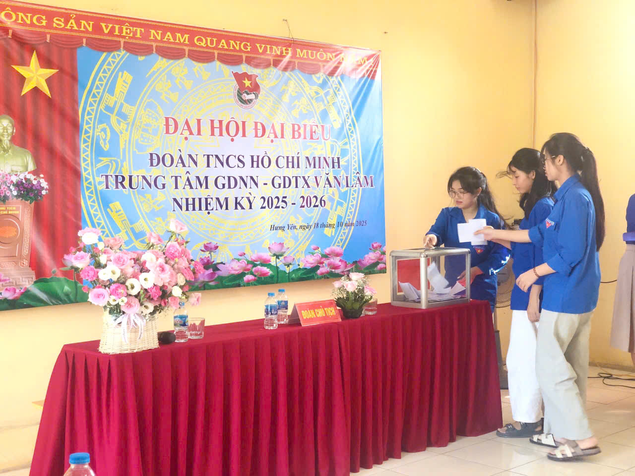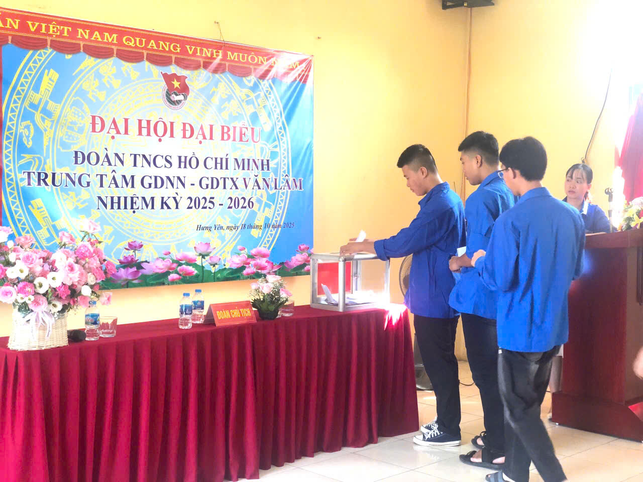 Đại hội cũng đã tiến hành bầu Ban Chấp hành Đoàn Trung tâm GDNN – GDTX Văn Lâm nhiệm kỳ 2025 – 2026, gồm những đồng chí có đủ phẩm chất, năng lực, nhiệt huyết, gánh vác trọng trách đưa phong trào Đoàn và thanh niên của Trung tâm ngày càng phát triển vững mạnh.